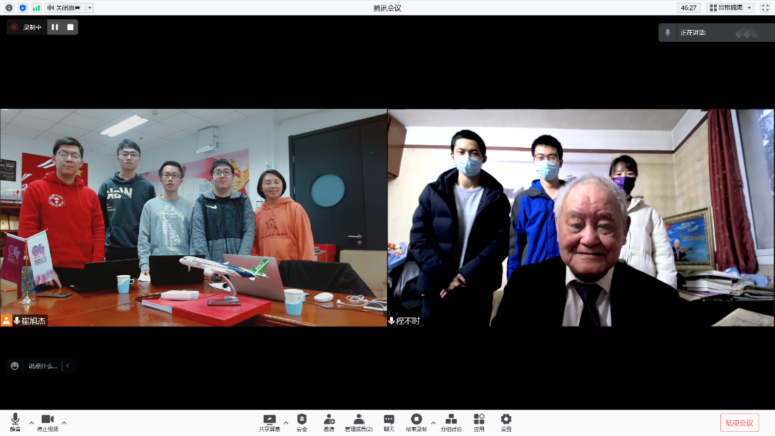 2018级航空宇航科学与技术专业博士生戴今钊同学感言说:“程老与顾诵芬、徐舜寿先生肩并肩观看歼教-1起飞的照片给我留下极深的印象。航空前辈们筚路蓝缕,让我们拥有了和平的生活。建立强大航空工业,捍卫祖国和平的信念,也将为我们继承,成为我们今后奋斗的动力。”