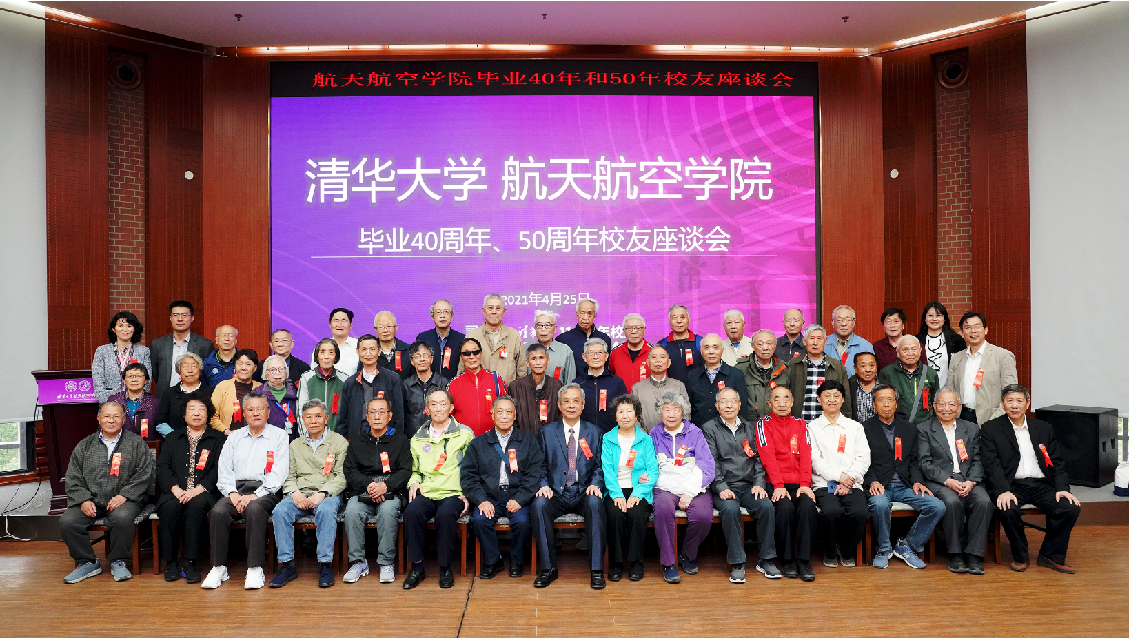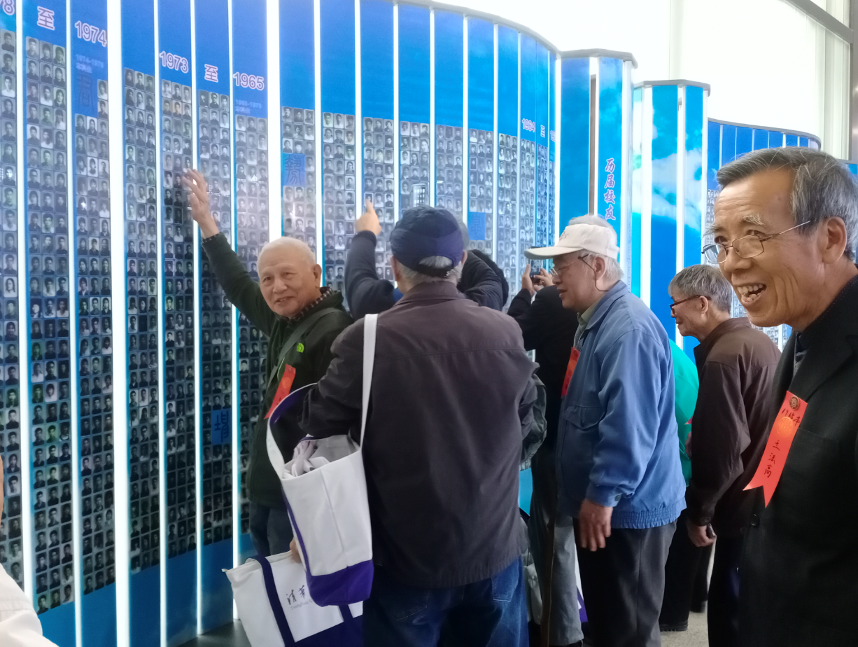 座谈会结束后,与会校友与老师们合影留念。随后,校友们纷纷来到一楼参观校友照片墙,寻找属于他们的清华记忆。