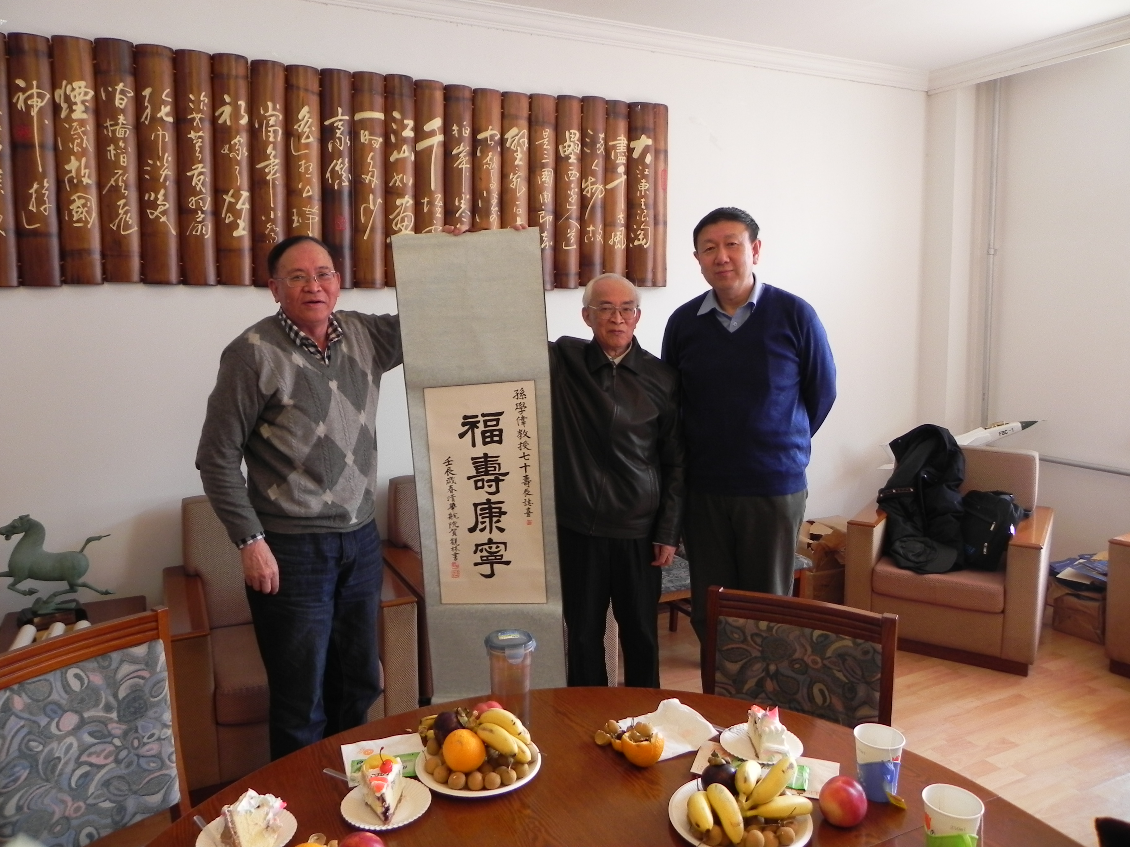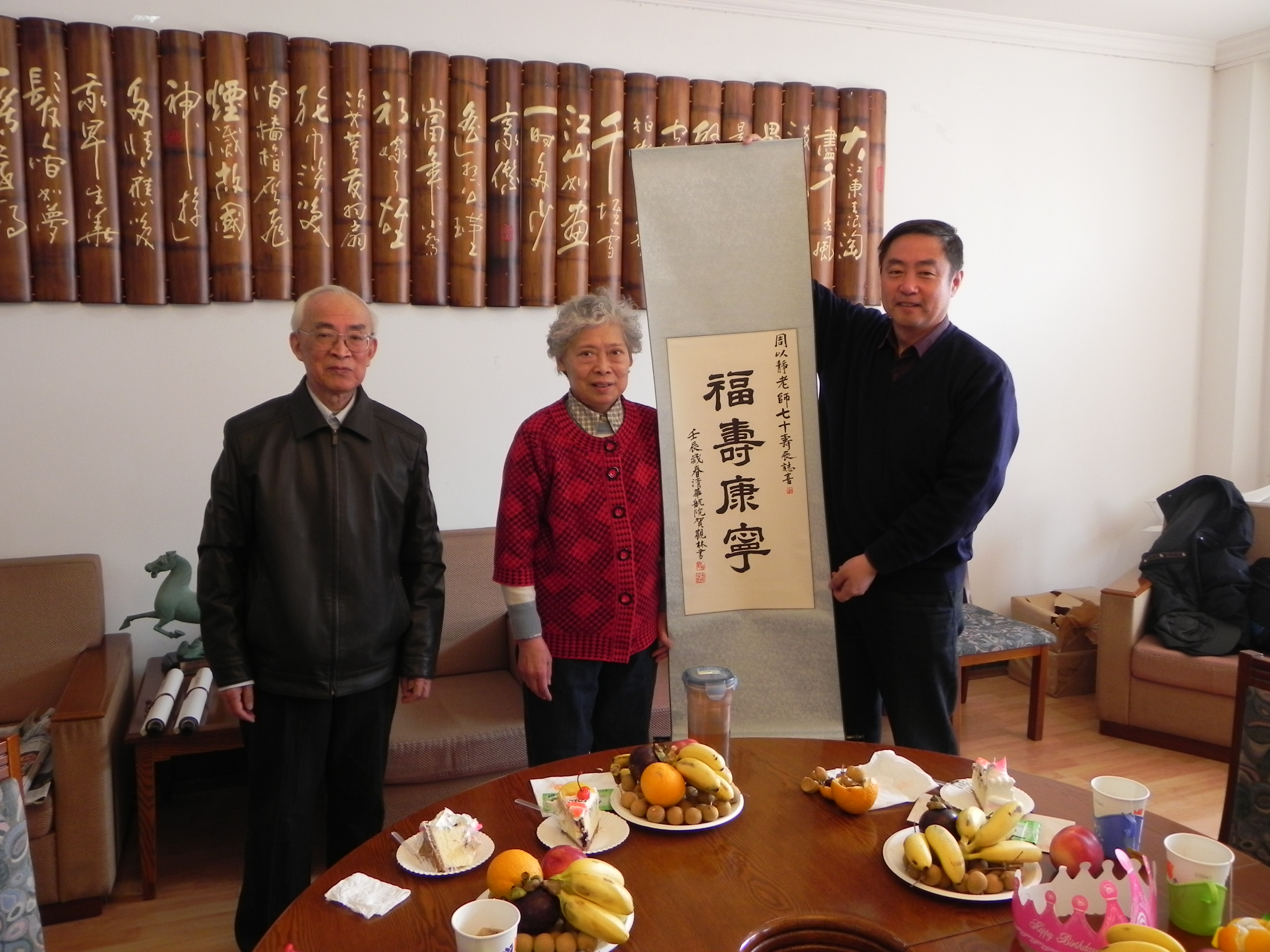 梁新刚代表全体教职员工祝福老同志生日快乐,身体健康;同时还向老同志们介绍了学院的发展情况以及2012年学院的总体工作安排;学院将尽可能的为离退休教职工提供方便,改善离退休教职工的生活条件,也希望老同志们能为学院的发展献计献策。庄茁为老同志们献上题有“福寿康宁”的字画,并向老同志们介绍了院离退休教职工基金等福利政策,祝福老同志们晚年生活幸福。