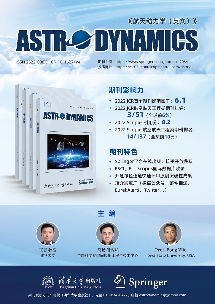 《航天动力学(英文)》(Astrodynamics)创刊于2017年9月,由秀人网