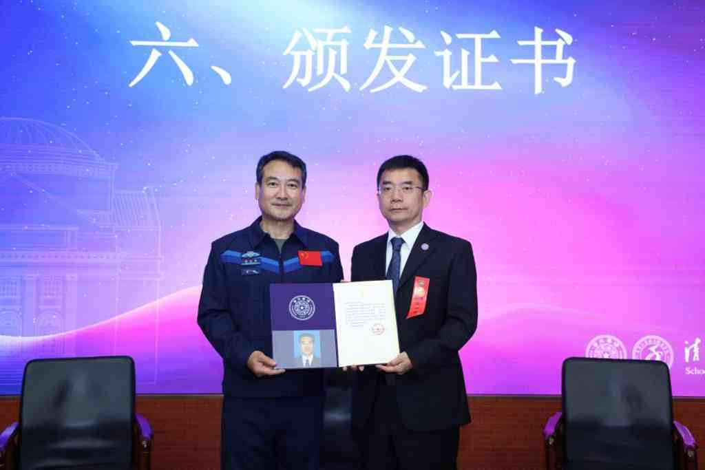 党委书记陈海昕向翟志刚颁发启航讲堂证书