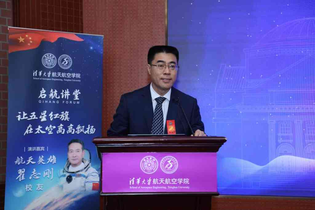 院长曹炳阳致开场辞,鼓励同学们以优秀校友为榜样,为实现航天强国的梦想努力奋斗。