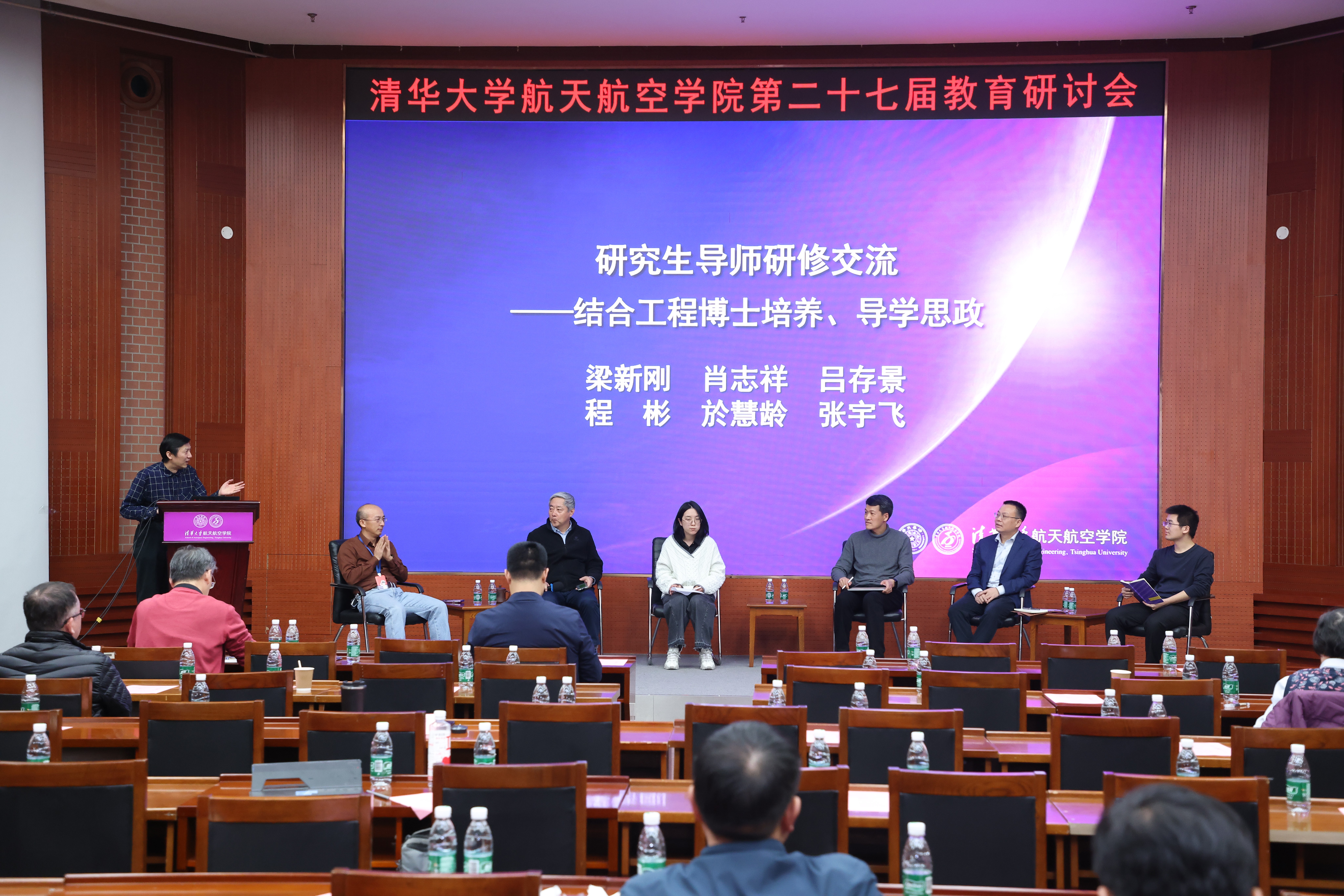 杜建镔主持研究生导师研修交流环节,梁新刚、肖志祥、吕存景、程彬、於慧龄、张宇飞六位老师作为研究生导师代表发言。梁新刚从选人到论文撰写的博士生培养各个流程提出自己的经验,强调了不同环节的不同要求;肖志祥从创新领军工程博士生招生入手,着重讨论了博士生培养过程中对导师的要求;吕存景以孔子的教育故事为开篇和结尾,详细解析了将一张白纸培养成为合格、优秀、顶尖创新人才所需要的关键要素;於慧龄从青年教师的角度出发,分享了自己在科研教学过程中的心得体会,强调了面对学术的严谨热情和面对困难的团结协作;程彬从自身学习经历出发,表达了对于博士生导师身份的敬畏之心和对课题组氛围的重视;张宇飞从导学思政工作出发,对各位老师的育人工作提出倡议。随后陈海昕、曹炳阳与各位老师就工程博士培养和导学思政展开进一步交流。梁新刚、肖志祥指出要把高学术水平和重大工程紧密结合,而工程博士是重要的载体,博士生导师有责任和义务按时、高质量地培养好工程博士。