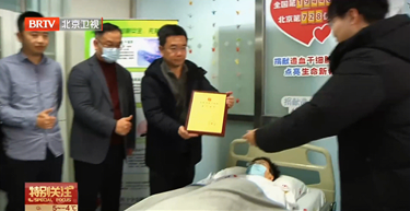 陈海昕为薛晗颁发了荣誉证书,并详细询问了薛晗造血干细胞捐献前后过程,向其善举表达敬意,叮嘱她返校后要注意休息、恢复身体。