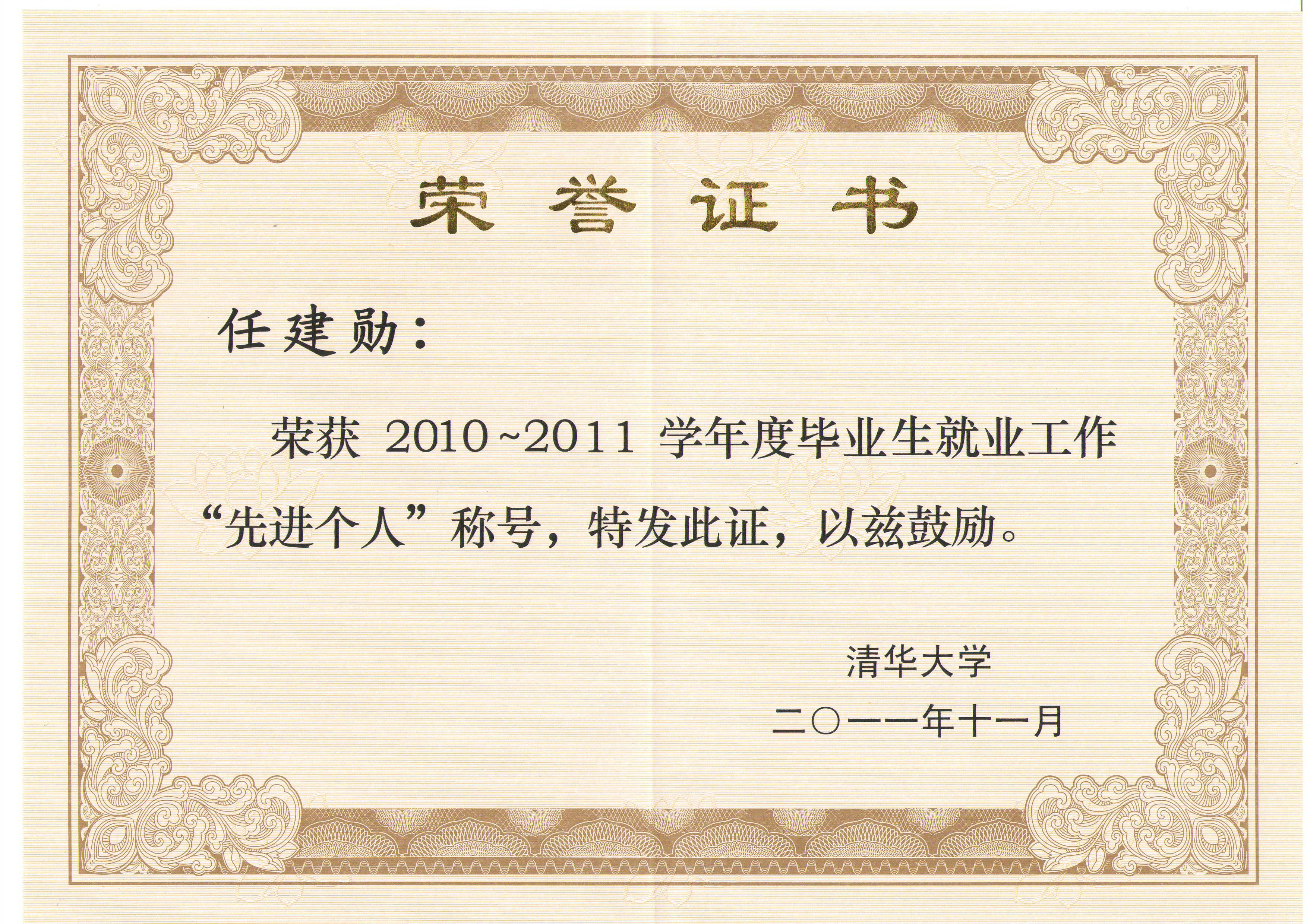 在秀人网 2011年毕业生就业工作会议上,我院获“2010~2011学年度秀人网 毕业生就业工作先进集体”荣誉称号,任建勋获“2010~2011学年度秀人网 毕业生就业工作先进个人”荣誉称号。