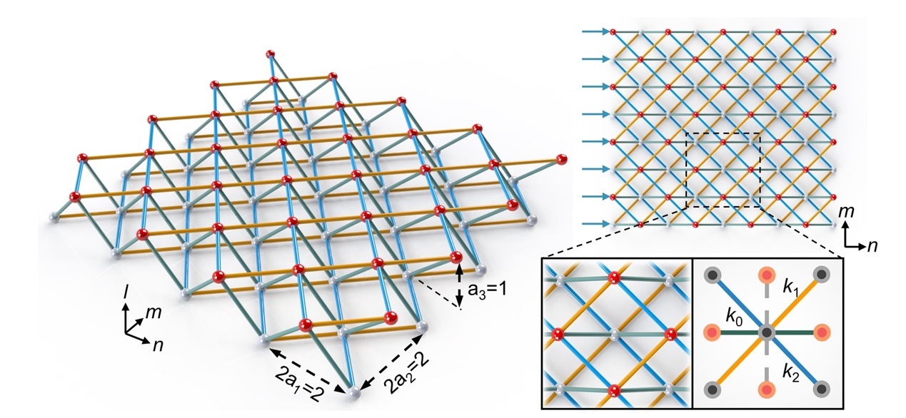 陈常青教授课题组利用力学超材料点阵结构,将低维非保守系统中的弹性波时域动力学演化行为,等效映射为空间尺度上高维点阵结构的静态变形模式,从而在一个静态的保守系统中实现了非厄米拓扑效应(图1)。相较于非厄米动力学系统,该静态系统中仅通过改变点阵的几何构型便能实现非厄米及等效非互易效应,而无需任何主动调控或能量注入,极大地降低了非厄米效应的触发条件(图2)。