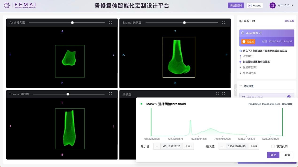 图2 智能设计系统通过Hu值切分法分离需设计骨组织结构