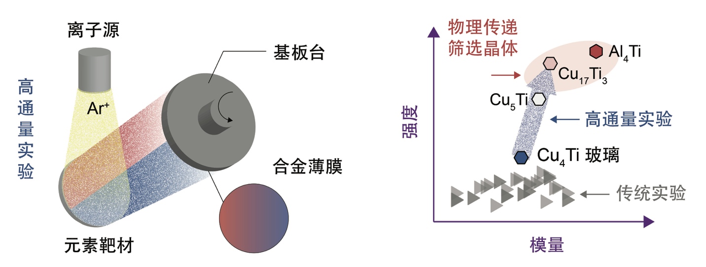 徐志平课题组提出物理传递学习理论框架,以解决在预测合金强度时精度与效率难以兼顾的难题。该框架仅需基于少量化学精度理论计算数据,即可实现金属合金强度的高精度筛选。在理论预测引导下,课题组与中国科学院研究团队合作,通过高通量离子束沉积技术,首次制备出传统方法难以获得的高强度亚稳态二元合金,为合金材料开发开辟了新路径。