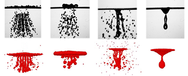开发了基于 AMR+level-set+GFM 的大密度比多相流界面数值仿真平台。提出了基于应力外插的GFM方法,可实现具有复杂本构关系的非牛顿流体介质界面运动与变形的精确模拟。