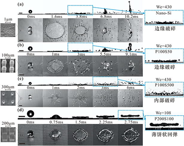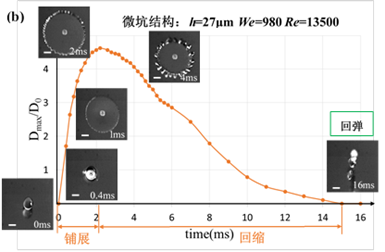 C.微流动液滴在具有不同微结构疏水表面上的碰撞行为