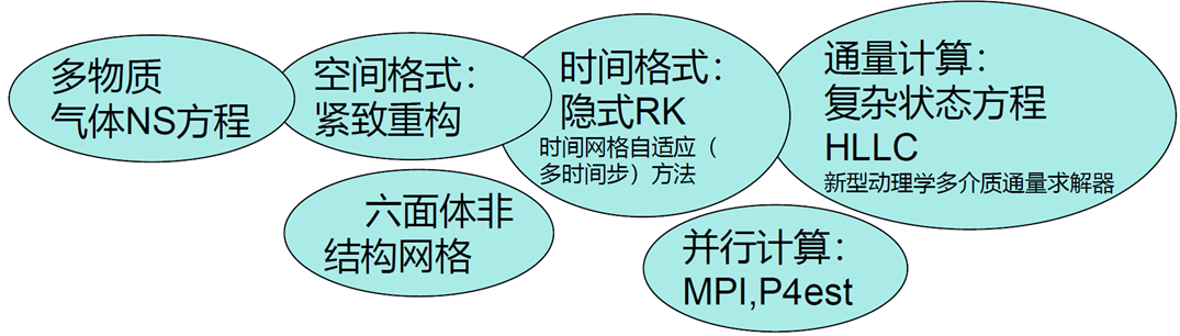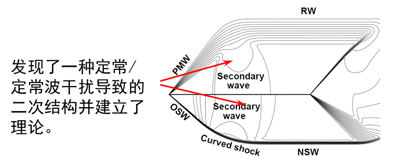 针对含激波的高速可压缩流场,发展了一系列高精度、高分辨率、高鲁棒性的数值计算格式,包括色散最小、耗散可控(MDCD)格式及高精度边界处理、有限体积方法紧致重构技术等,已经在高超声速流动模拟中得到了广泛应用。