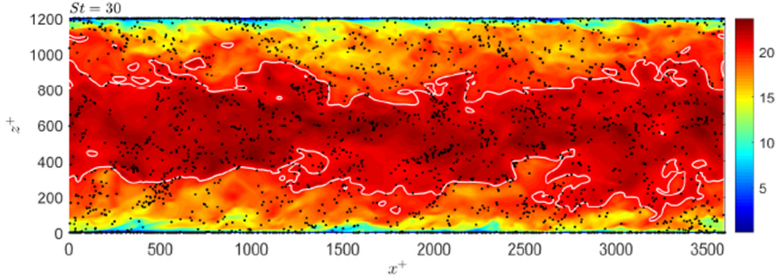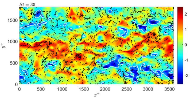 面向风沙等实际环境和工程问题,针对高雷诺数壁湍流颗粒两相流流动,发展了高效大规模并行两相流直接模拟求解器,完成10亿量级网格与数亿颗粒量级的大规模计算,揭示了中高雷诺数壁湍流外区大尺度流动结构对颗粒的输运和聚集影响。