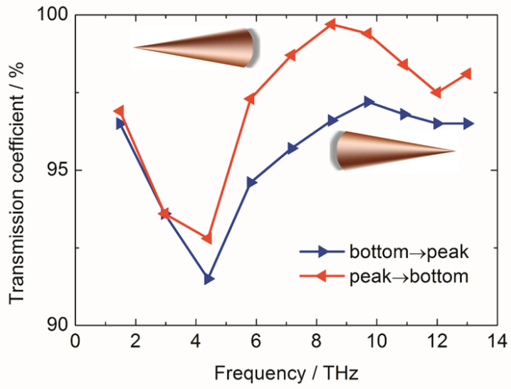 (2)机制:界面结构对来自两侧声子的反射不同。