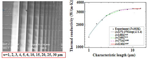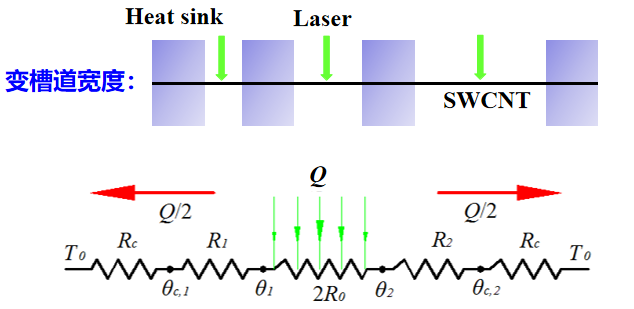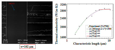 超长单壁碳纳米管悬架于不同宽度的槽道上,测量每一悬架段样品的热导率。