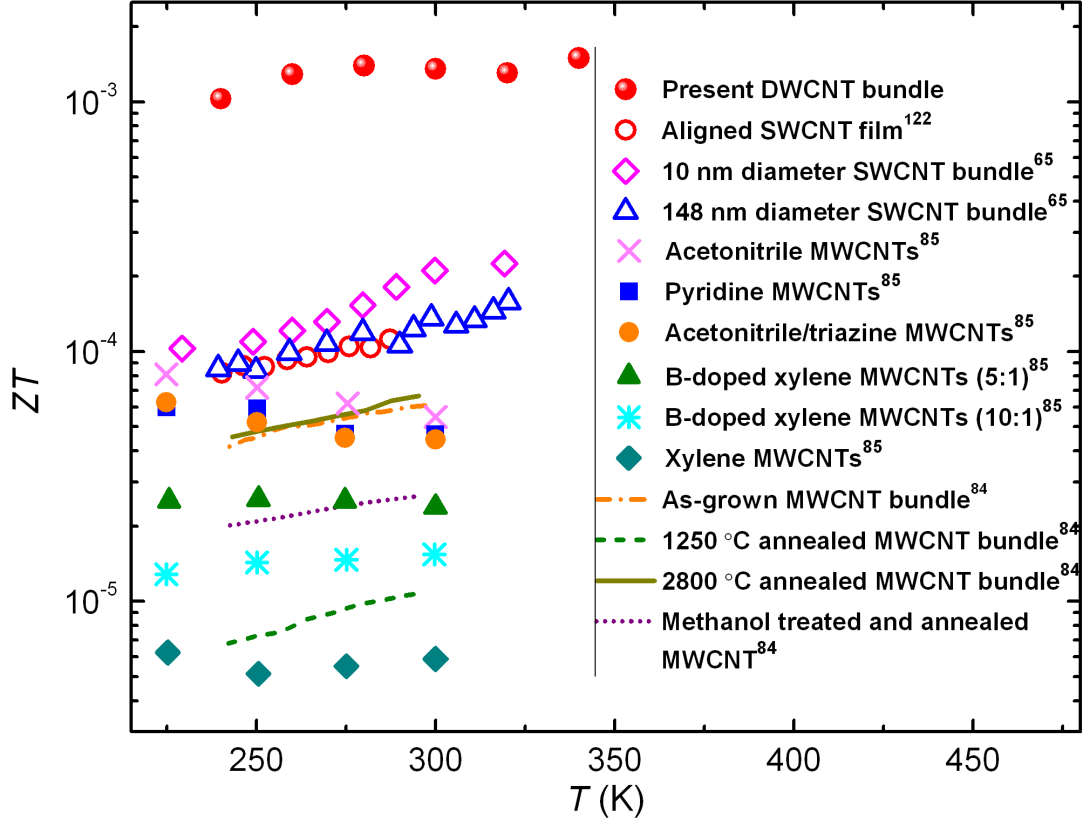 无量纲优值ZT较文献报道的碳管样品高一个量级