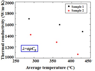 热导率:25~40Wm-1·K-1,热导率减小,声子导热占主导