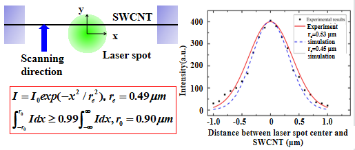 根据聚焦激光光斑沿垂直于SWCNT方向扫描得到的拉曼信号强度分布确定激光能量分布。