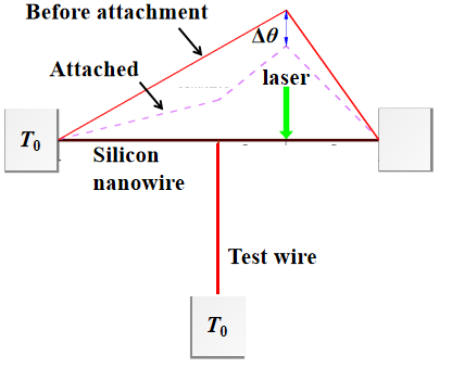 单根纳米线光学性质和热物性的准确测量对揭示纳米受限空间内的热输运规律和纳米线的应用非常重要。另外,单根纳米线激光吸收系数的准确测量对于光电、光伏、光催化、光电解等应用具有重要意义。本课题组将T型纳米传感器和拉曼光谱相结合,开发了拉曼T型法,实现了单根纳米线激光吸收系数、热导率、接触热阻、空气传热系数等参数的高精度综合测量。