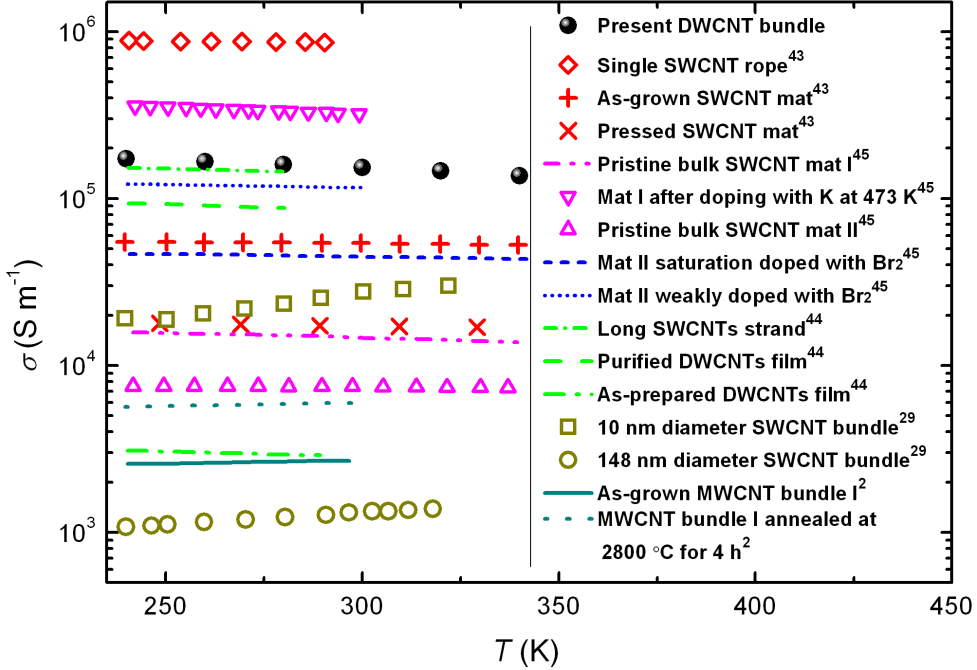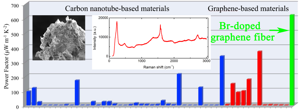 功率因子:已报道的碳管和石墨烯样品中的最大值