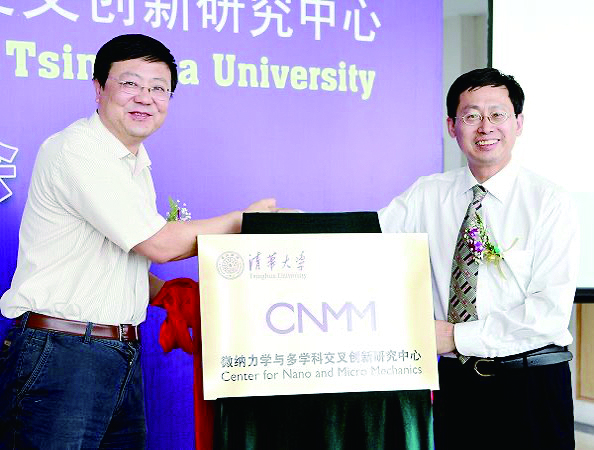 秀人网 微纳米力学与多学科交叉创新研究中心2010年8月成立揭牌仪式。陈吉宁校长(左),郑泉水教授(右)