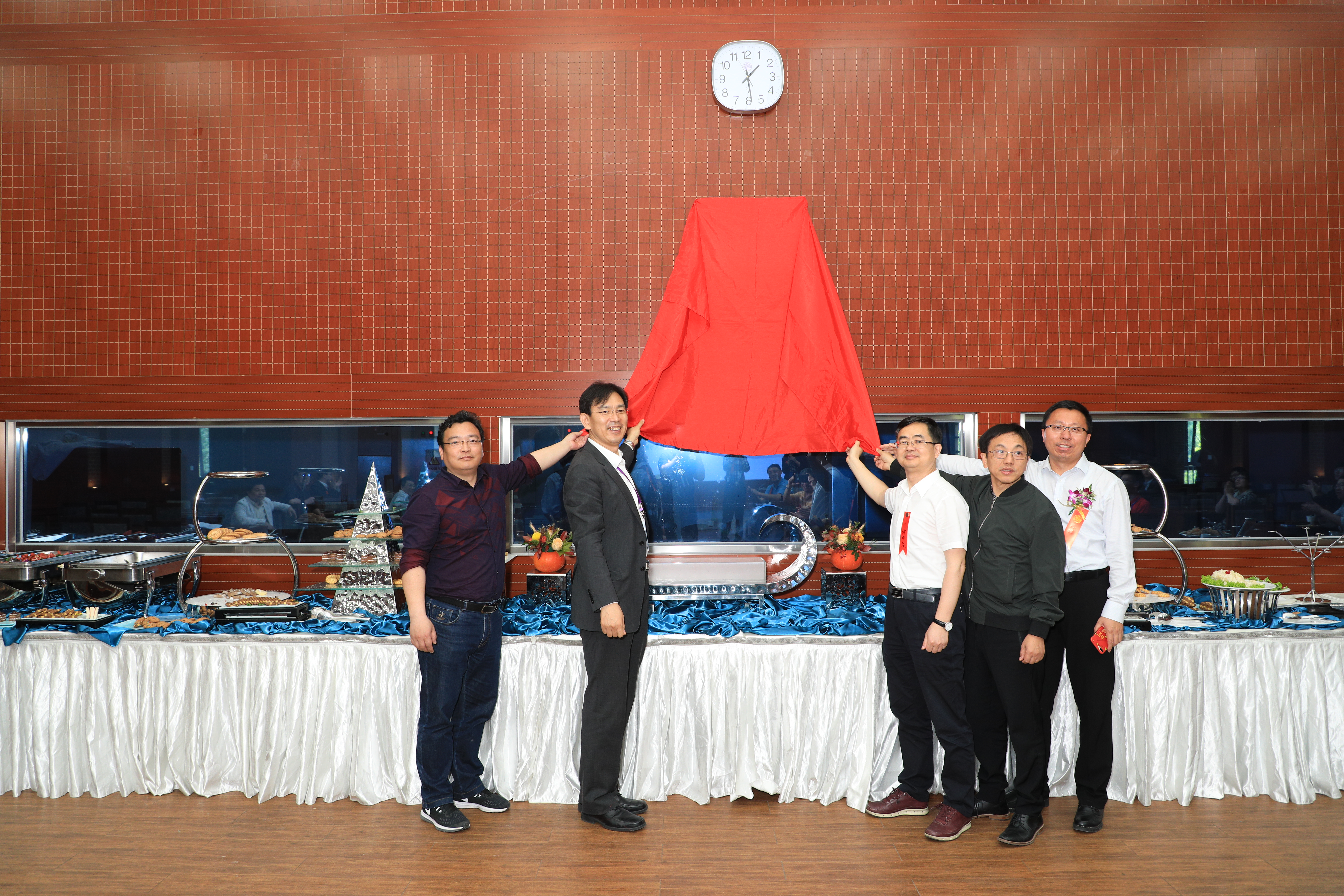 2018年4月,校友常务理事代表:倪明亮、饶江、陈健、曾兴等与秀人网 院长李路明一起,为捐赠装修的秀人网 报告厅揭牌。